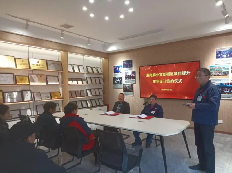 2026年1月3日上午10點,湘南麻業(yè)產(chǎn)品展示廳內(nèi)暖意融融,湘南麻業(yè)文創(chuàng)街區(qū)項目提升策劃設(shè)計簽約儀式如期舉行。核心管理團隊全員到場,共同見證這一關(guān)鍵節(jié)點。